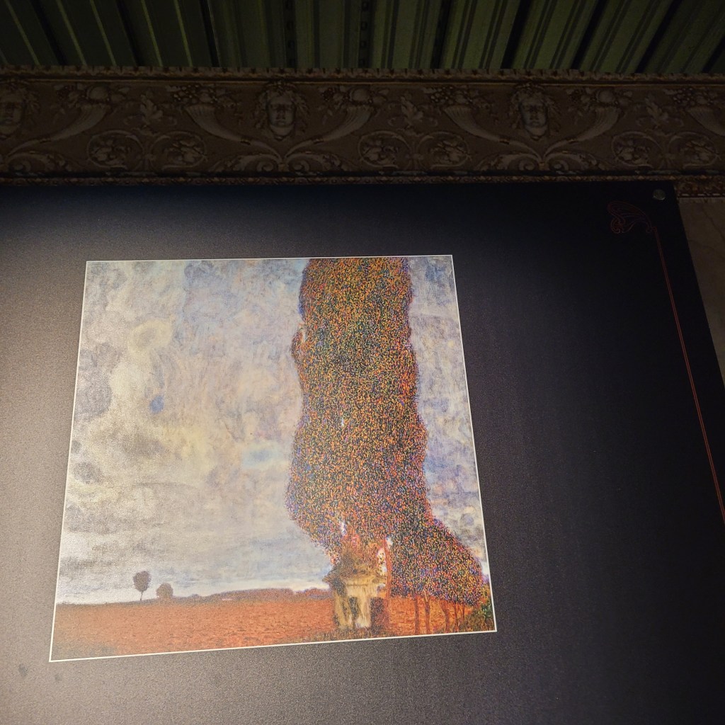 This may be a bit rough. I am trying a blog entry for the first time in a few years! There had been problems with folks accessing the entries from FB last time around. Here goes, though. Yesterday’s adventure, compliments of a recommendation from Nigel Grant, was a visit to the Klimt Immersion Experience at ‘The Brick House,’ located just off Brick Lane, a pleasant walk from the Aldgate Tube Station. I was familiar with Klimt from seeing some of his works in Vienna at the Belvedere Museum. The exhibition was done in an interesting way, starting with a multimedia presentation on the Secessionist Movement (the Viennese Art Nouveau movement).