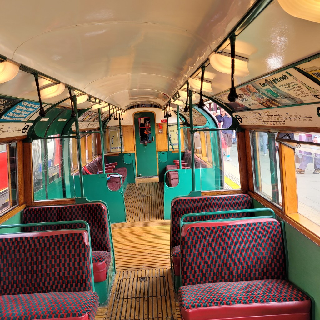 change the name from London Transport to (its current name) Transport for London). “Some new one came in and felt they had to make a change!” This fellow became my travel companion for the next hour or so and kept me delighted with his views on things. Back to the trains, the interior, as I hope you can see, had fairly comfortable seat, the moquette colors of a deep burgundy and blue with the green walls and the wooden trim around the windows and the wooden floor slats spoke of an early, perhaps more mannered time. Not a spot of graffiti, carved or written, was to be seen anywhere. We weren’t packed in so tightly that anyone had to use the overhead hangers to hold on either. My Sheffield friend had taken quite a few of the “Hidden London” tours of the Underground stations and he recommended them to me. In the course of his discussions, we slipped into talk of World War II museums and places of interest, and he had and interesting story about his 103-year-old uncle who had been a navigator in a bomber during the Battle of Britain. Being about the same age, we also both mused at how very young the boys who made the assault on Normandy, both by air and sea were and how, by contrast, we were very lucky to have not had to have been called to make such a sacrifice.