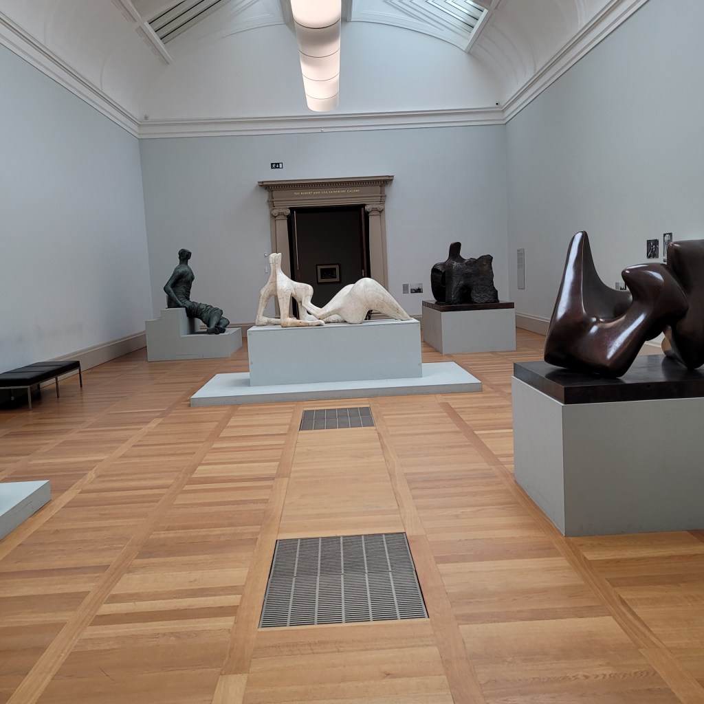 There was so much more to enjoy. Before I move on to sculpture, I’ll mention, in passing, Mark Rothko’s Seagram Murals. Originally painted for the Four Seasons Restaurant in the Seagram Building in New York City, the artist gave them to the Tate. Because of their fragility, they are kept in a special low-light gallery, and I am never terribly satisfied with photos of them. Do go to see them if you have the chance. Of course, one can’t speak of the Tate Britain without saying “the T word,” (Turner). The gallery’s J.M.W. Turner collection is world renowned. Turner’s paintings are beautiful and should be seen and admired. The way he brought sunshine and light into his seascape is breathtaking.