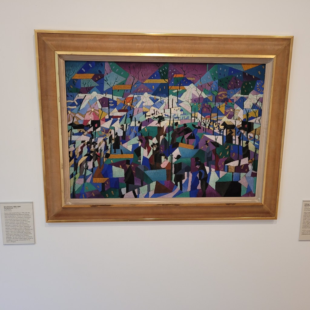 My adventure of the day was my journey to the Estorick Collection of Modern Italian Art. If you plan a visit, it’s an easy trip on the Victoria line to Highbury and Islington, (one stop past Kings Cross) on the train toward Walthamstow . There are quite a few steps to ascend from the train to exit the station. You exit the station to a large plaza with a restaurant, shops and nearby cafes. I crossed a well-marked set of crosswalks to start down Canonbury Road, I passed Highbury Corner Garden, a strip of garden adjacent to