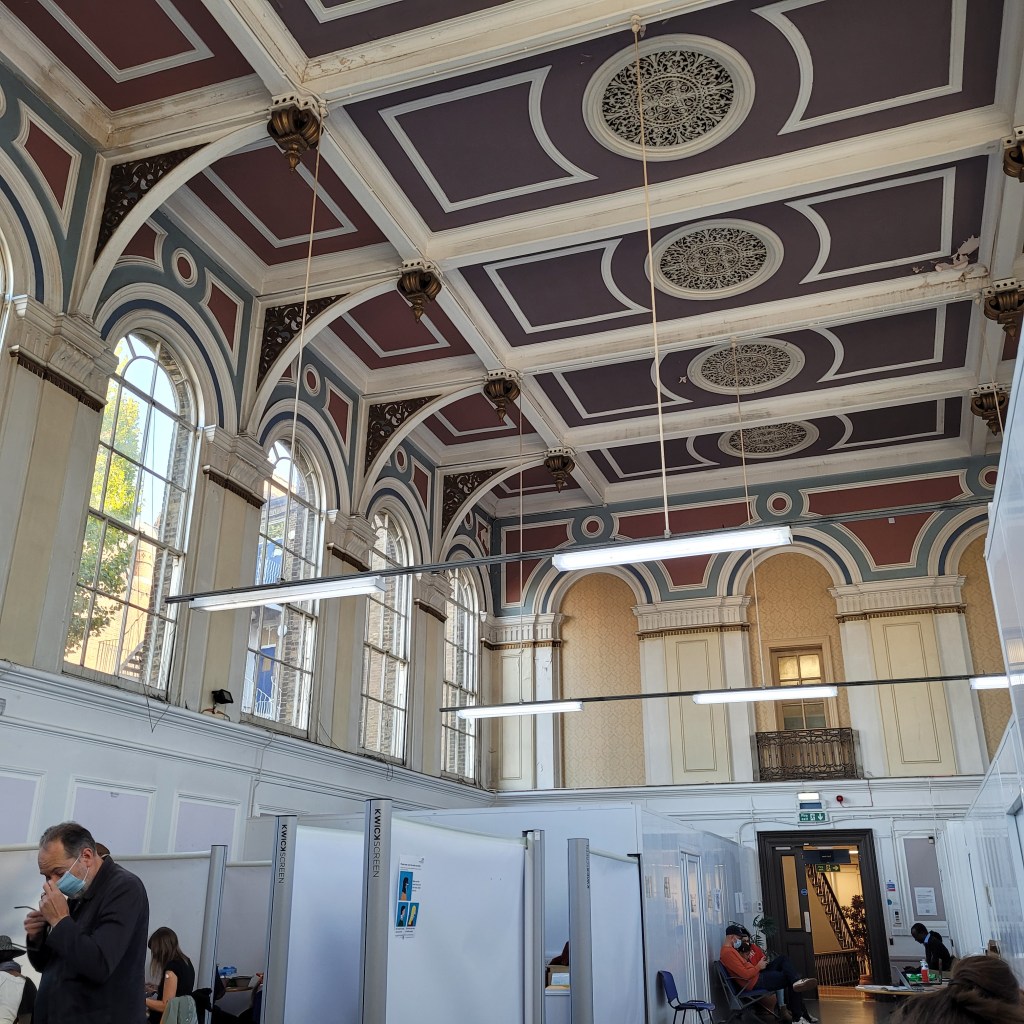 As I mentioned, this is an old hospital. It has roots as a workhouse for the poor of Shore ditch, London. The building where the clinic was held was a grand old 19th Century one. I noticed the details of the high ceilings and large windows. I mentioned this to the woman who was about to “jab” me. She told me that
