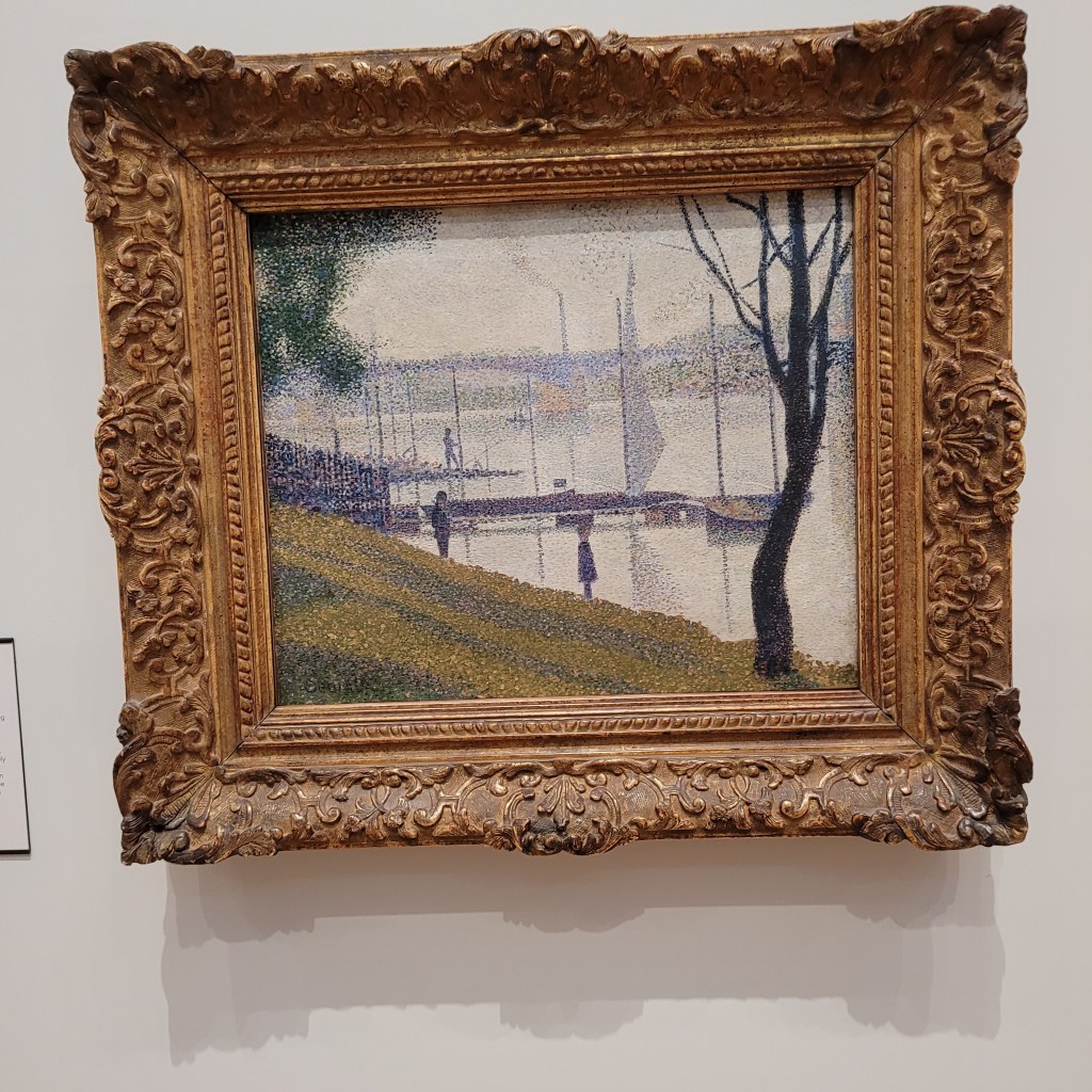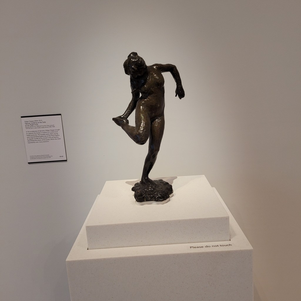 “Autumn Effect at Argenteuil” by Monet did standout to me. Seurat’s “The Bridge at Courbevoie” was excellent example of pointillist technique and Seurat’s unique style and detail, a delight to visit. I also thought that “The Haystacks: by Gauguin stood out in the collection. Degas’ “Dancer looking at the Right Sole of Her Foot,” is one of his exquisite small sculptures that made this visit a pleasing one too.