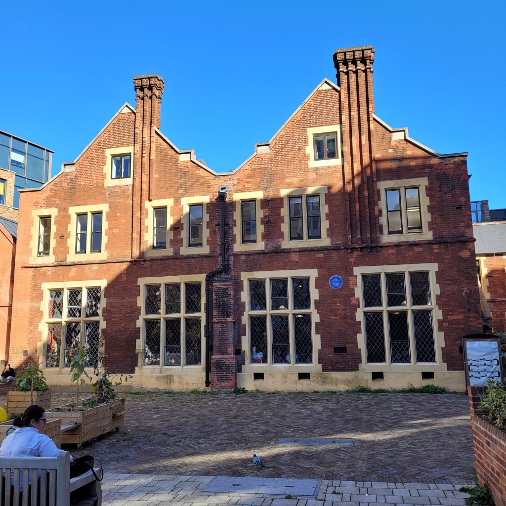 According to the National Trust, they are not “Roman, but in fact the remaining portion of a cistern built in 1612 to feed a fountain in the gardens of the old Somerset House, then a royal palace. After a long period of neglect and decay, following the demolition of the fountain, they were brought back into use in the 1770s as a public cold plunge bath. They can be viewed by making a request to the Westminster Council. I took the Tube on to visit another favorite London market, Spitalfields, that I have visited and posted about before on my Facebook page. I will post this picture of Christ Church Spitalfields, designed by Nicholas Hawksmoor and consecrated in 1729. And the picture of this interesting Arts and Crafts building that was the home of Dr. Jimmy Mallon, CH, Warden of Toynbee Hall, Champion of Social Reform (according to the Blue Plaque erected there.