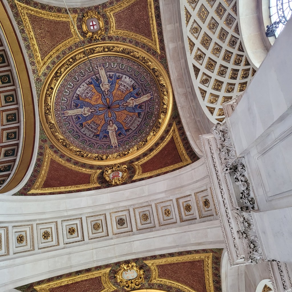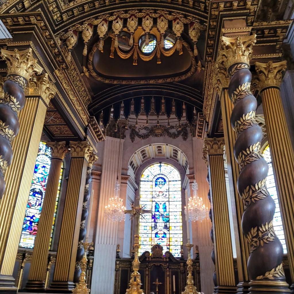 The main entrance to Saint Paul’s is the best way to visit this Christopher Wren masterpiece, another of the churches he designed after the great fire. This is very much a working church. I was lucky to happen upon a Eucharist service as I entered. The Anglican priest was welcoming to all who were present, and he spoke in a way that made people comfortable. It was a lovely experience, and it made the time I spent enjoying the beauty of the church’s art and architecture all the more enjoyable.