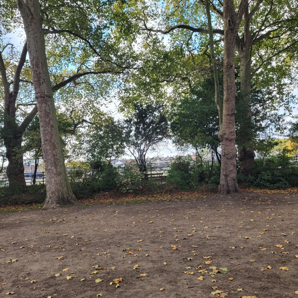 The next day on my Finals Week Tour I started with a quick trip to Craven Cottage for a visit to the Fulham FC shop to spend a bit of money. After buying a colorful shirt to wear at the beach or pool this winter and a few ornaments for my Florida Christmas tree, I decided that rather than getting a taxi or uber, I would walk back through Bishopsgate Park on a fine October day and take the Tube from Putney Bridge Station. Below are some pictures I took as I walked through this beautiful park that always provides me with such happiness no matter how the results of a Fulham home match turn out.