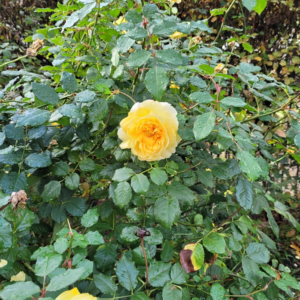 As I headed toward the Russell Square Tube Station, something compelled me to take a slight detour through the Brunswick Square Gardens. Almost immediately upon entering this lovely urban green space, I noticed a rose bush, still in bloom. As I walked along, I took these three photos, the third flower was right next to a lady sitting on a bench. As I took the picture with my phone, I said to her, “late bloomers” and she replied to me, “aren’t we all.” That really made my day.