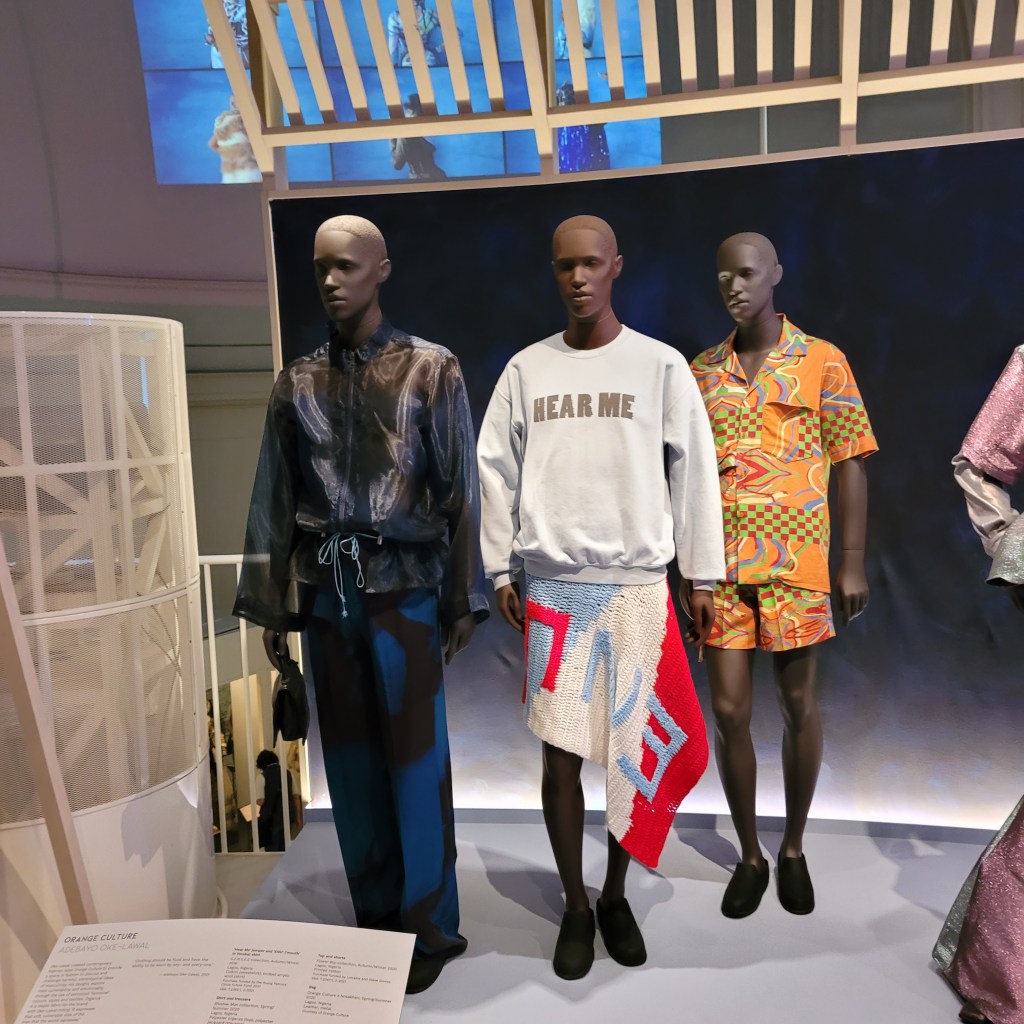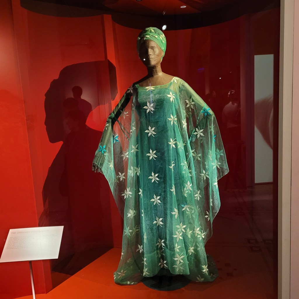 I am not much of a fashionista, but one of the great things about being a “friend” of the V&A is that it gives me free entry to special exhibits like this. The fashion on show were really quite interesting, some were stunning. The diaphanous green gown reminded me of the gown my mother wore to my niece’s wedding and that she loved so much that she asked to be buried in. The boldness of the colors and styles are wonderful, and I think remind us of another reason for hope for the future.