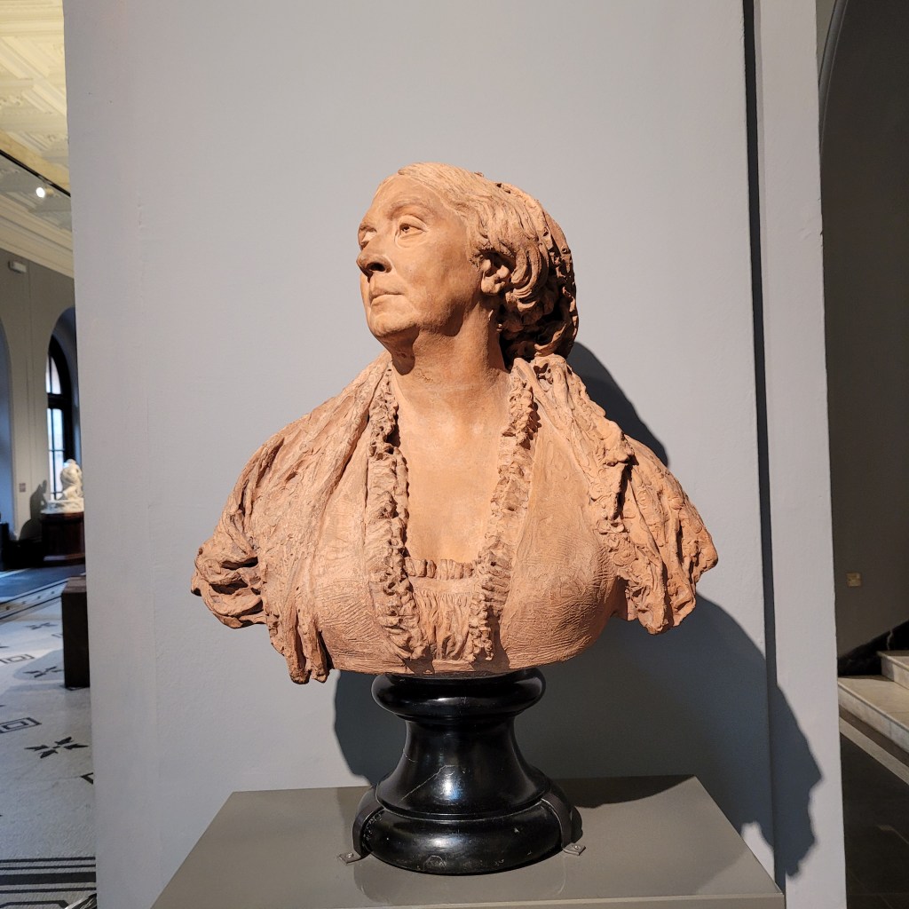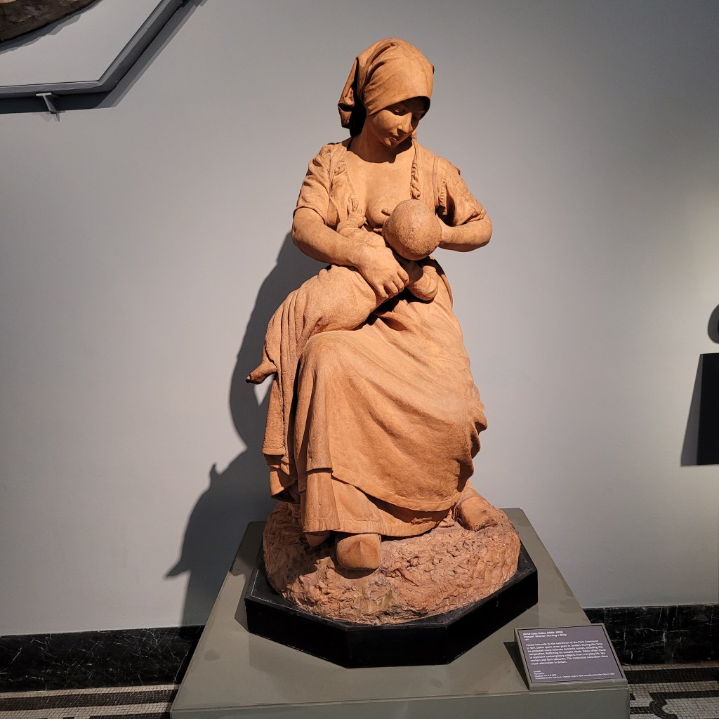Looking at these casts done of sculptures made in the 15th century reminded me of an art exhibition I saw in Brugge, Belgium about 20 years ago. It was a study of how the female breast was, in the 13 to 15th centuries not taboo, especially in religious art. The Madonna was frequently shown breast feeding the baby Jesus. Seeing the cast of 19th century Dalou sculpture reminded me of the earlier exhibition and these two in the cast halls have me trying to remember the historical changes that brought about the later modesty issues in this regard.
