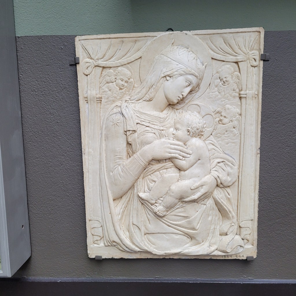 Finally, Rossellino’s 1450-1460 “The Virgin and Child with Cherubs” and Civitali’s 1470 to 1500 “The Madonna of Coughs.”