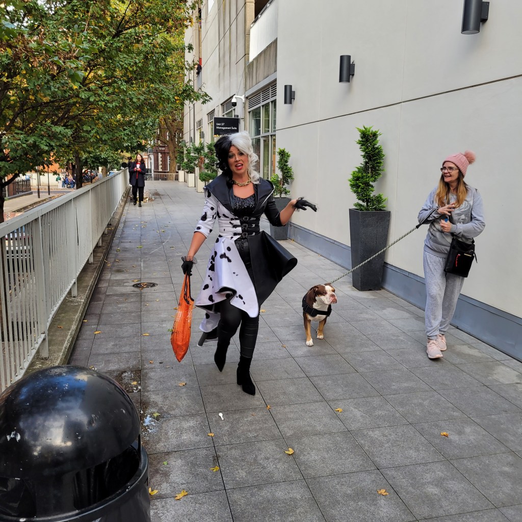When I returned to Bloomsbury, I went to visit the efficiency apartment complex I have reserved a place in for next year. As I left, I noticed this Blue Historic Plaque, just a few a few doors away. It seemed like an appropriate way to start the Halloween weekend. Little did I think that my next stop, the local Waitrose supermarket would surprise me with Beetlejuice, a witch and Cruella DeVille (scaring a neighborhood pooch).