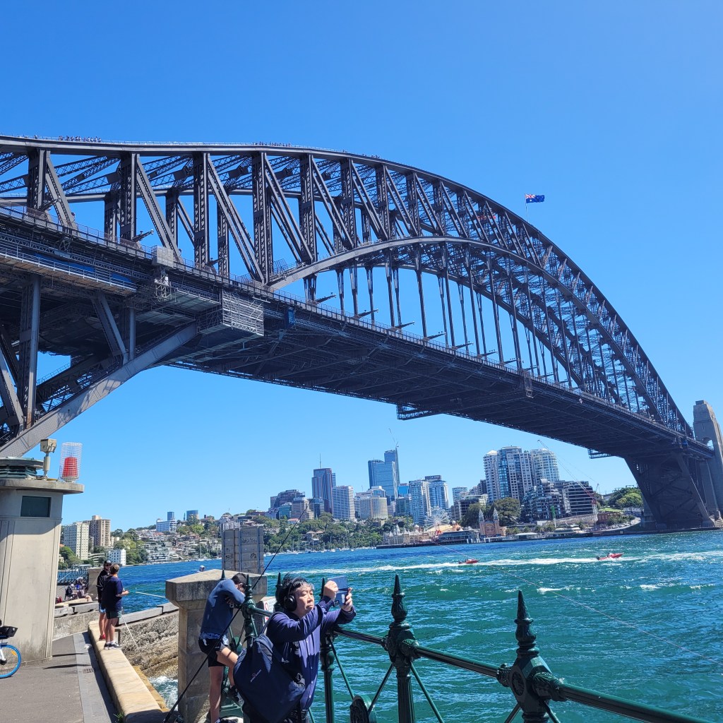 After seeing several peeks of the iconic Sydney Harbor Bridge, we finally turned around a curve and saw it in its glory. We noticed some tiny figures near the top of the span of the bridge that we finally realized were people making the bridge walk. We both agreed that this was definitely an activity we both enjoyed watching from a distance.