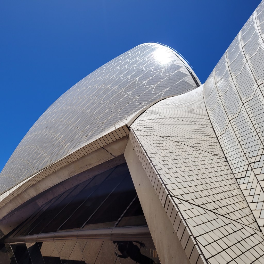A few interesting shots from outside the Opera House, one shows a close-up of one of the iconic “shells” and another shows the famous harbor bridge.