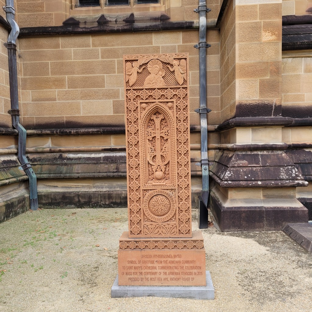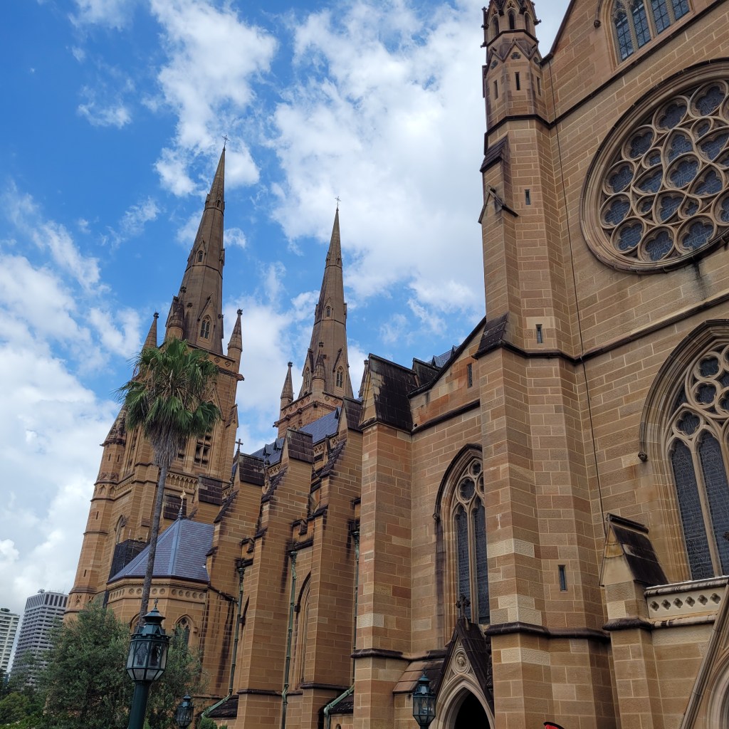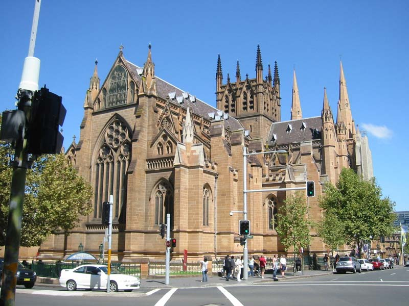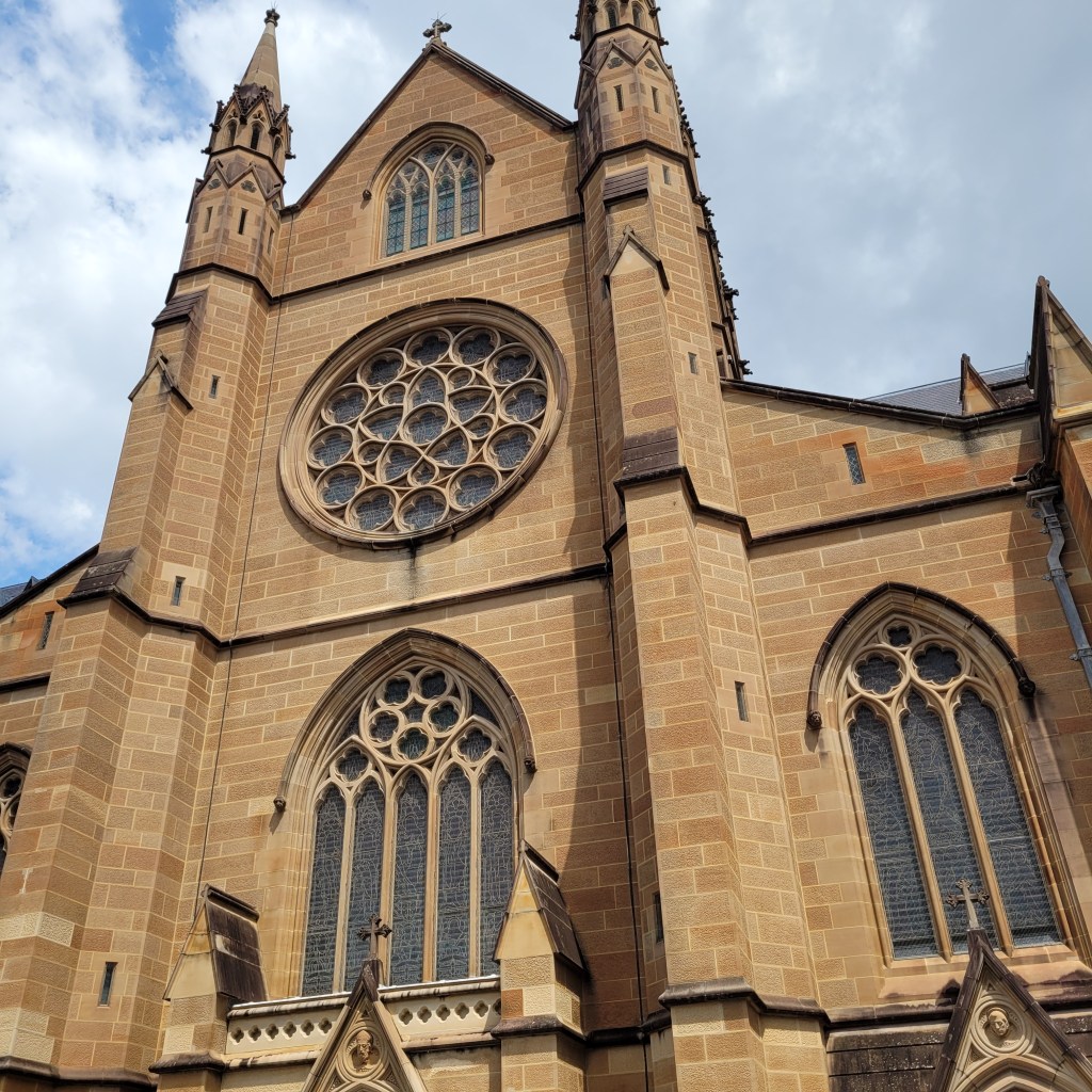 Let me tell you, folks, with all due respect to the Blessed Mother, that joint was jumpin’! There was a special mass for the girls’ parochial schools in Sydney still going on when we arrived. There were literally hundreds of Catholic school girls in a myriad of uniforms, with teachers, in the cathedral and a growing number of tourists and parishioners waiting to get inside. I took a few exterior shots while waiting.