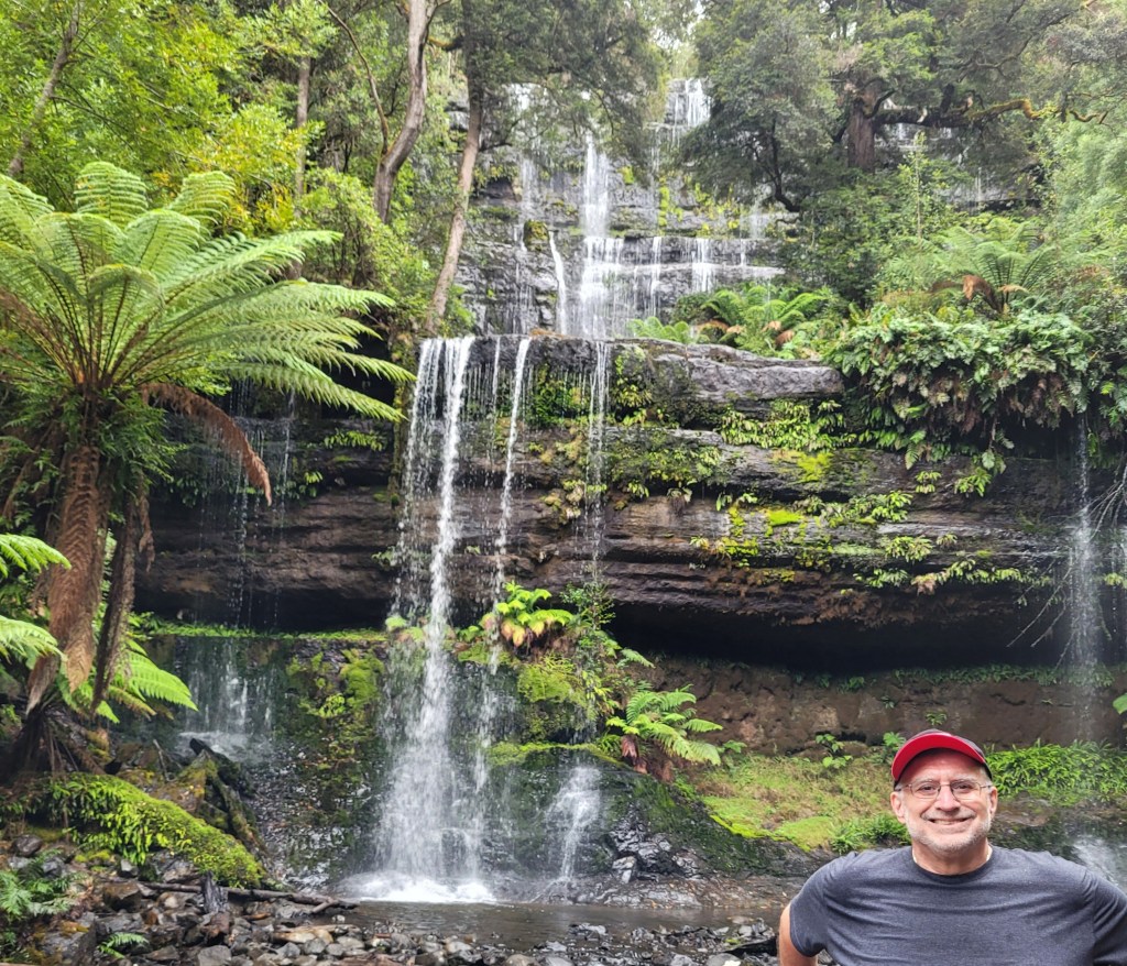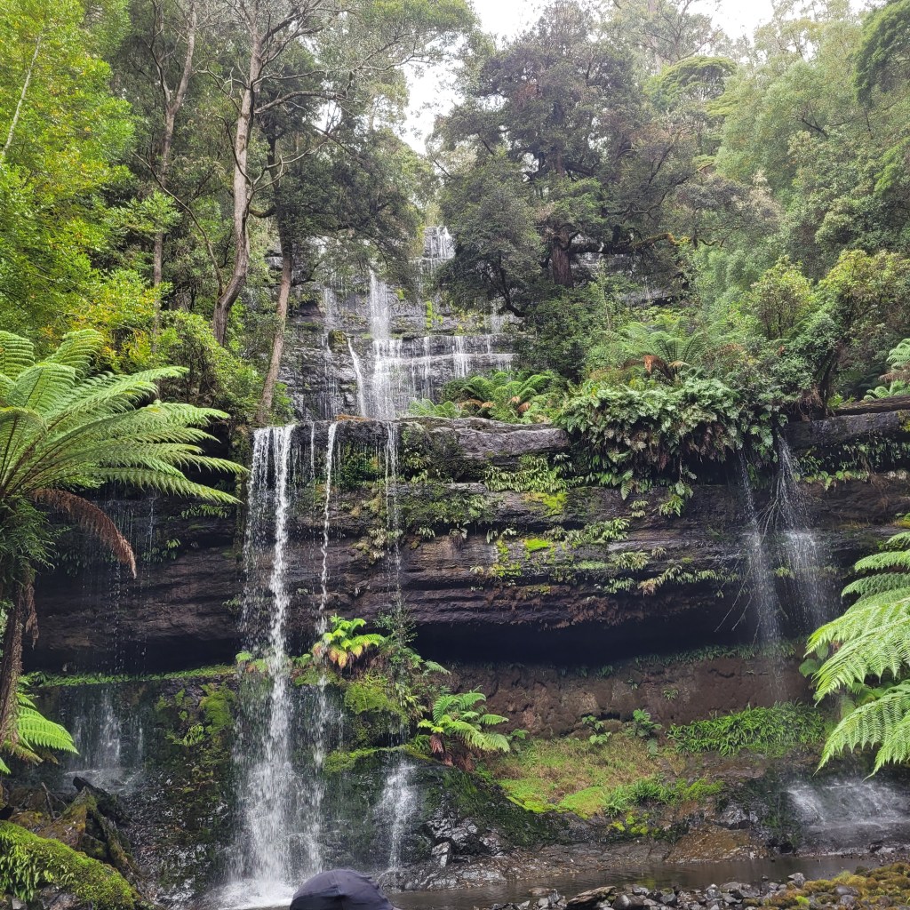 Leaving our little friend behind, we stopped at the entrance to Mount Fields National Parks for a lunch break and then headed on a pleasant well-maintained path toward Russell Falls, one of the many waterfalls that can be found on the Island of Tasmania. Again, you can get a hint of the biodiversity found in the rainforest. It was like being in another world, not just another continent.