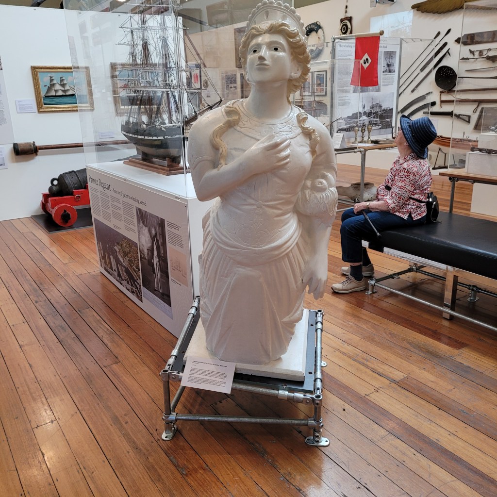 Finally, a wooden tall ship tied up next to part of the very modern Hobart Harbor complex on the left and a figurehead from a ship on display in Hobart’s Maritime Museum, a lovely, quirky local museum that is perfect for children and for folks who love the lore of the sea. I can bet that many class trips are taken to this charming place every year.
