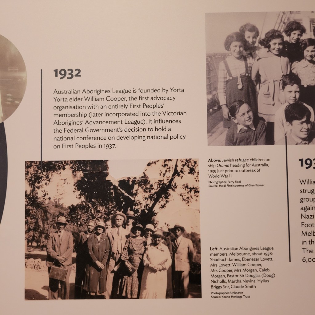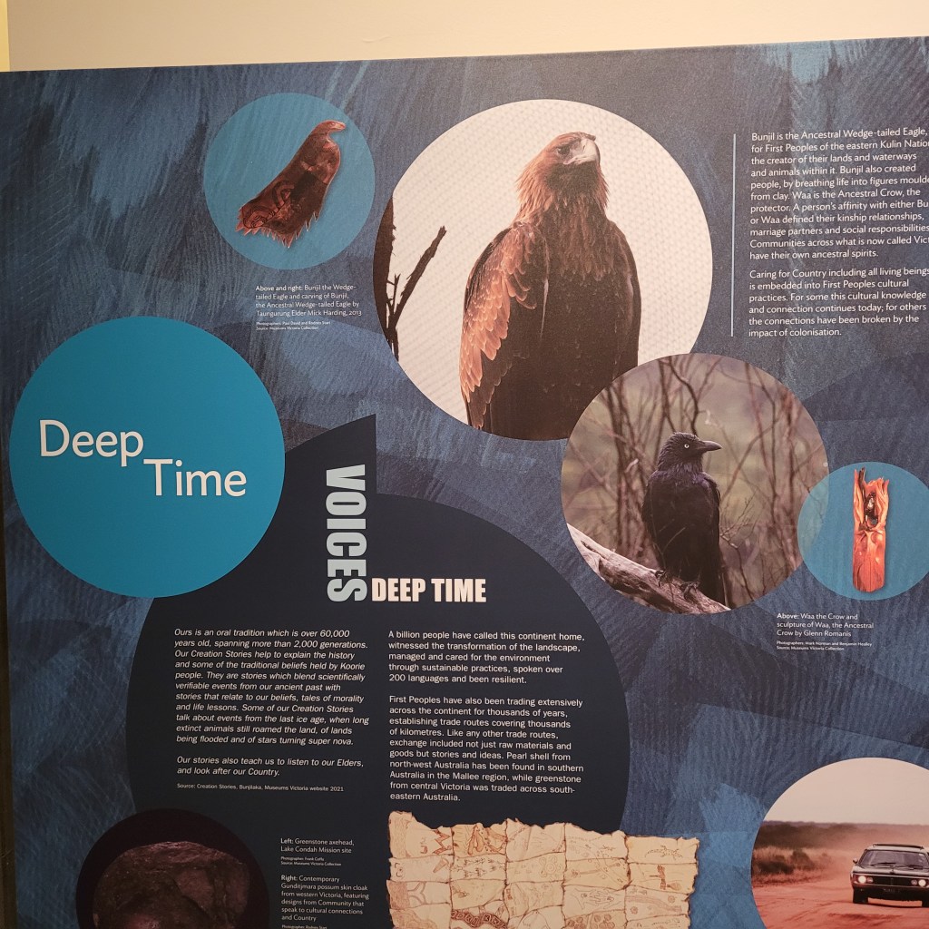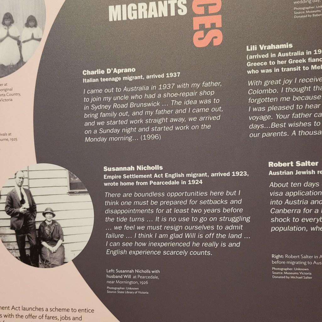 With time marching on, we took the tram back down toward the train station and walked over to the Immigration Museum. This nation that is trying so very hard to honor is First Nations and recognize them as the custodians and true holders of the lands on which all the structures and commerce of this modern nation exist is also keenly aware, not only of its impact on the Aboriginal and Island peoples, but also of the unique and continuing contributions and continually growing and changing makeup of Australia’s immigrant population. Telling the story of this unusual exercise in continuously building and binding a nation together with millions of moving parts that change constantly is what this museum tries to do.