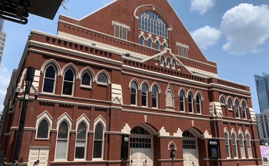 Bachelorettes, many dressed like these women above, visit Nashville in large numbers and that Saturday afternoon was no exception. Apparently, no Nashville Bachelorette party is complete without brightly colored ‘cowboy’ hats. We moved very slowly. But we did see many sites. We passed close to the old Ryman Auditorium, original home of the Grand Old Opry.