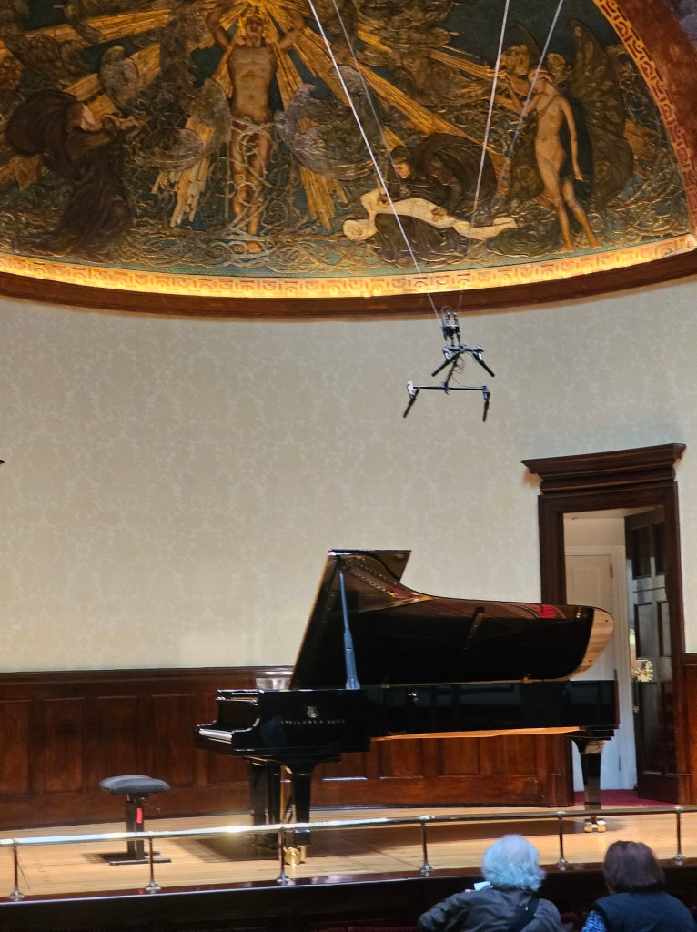 My second visit to Wigmore Hall, this season, was a Monday midday concert. As you can see from the picture on the left, there were fresh bouquets on either side of the stage. You can also see the grand piano and the microphones above it. These Monday concerts are broadcast on the BBC. Alim Beisembaev, a 26-year-old, from Kazakhstan, played pieces by Bach, Chopin, Debussey, and Stravinsky, each more stirring than the other. This is a young man with a bright future. Piano music has always fascinated me. As a child, I remember the piano-infused theme from the old American soap opera, “The Edge of Night.” This was not one of my mother’s preferred “stories,” so I knew little about it, but the music was so sophisticated and the Manhattan settings, started my interest in this instrument. I highly recommend trying to see this young performer if he comes to your community.