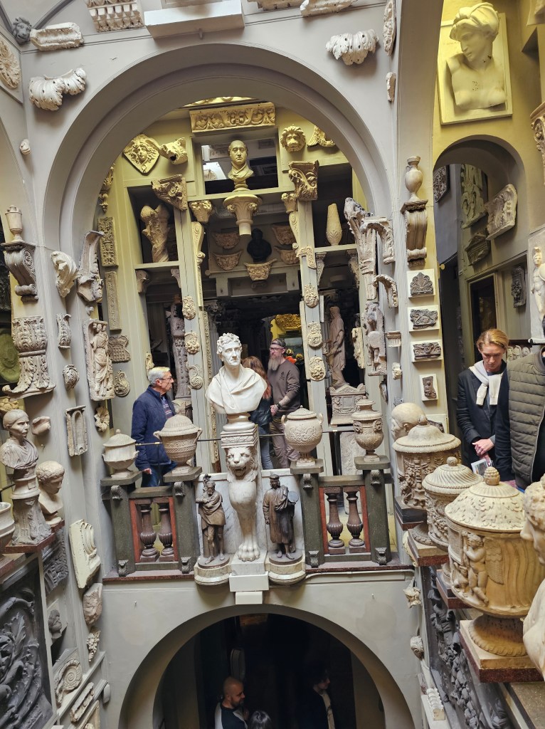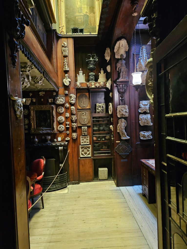 Sir John Soames, considered one of England’s greatest architects, was also a collector of painting, sculpture, artifacts, etc. In his will, he requested that his house be opened to the public, unchanged so that people could see how a house of the time looked. He died in 1837, and his museum is still with us today. The museum did acquire an adjoining house which now contains the giftshop and rooms for exhibitions by artists.
