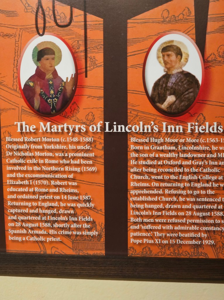 And so, the seasons are finally changing. As I was returning to the Holborn Underground Station after my visit with Sir John, I passed the church of Saint Anselm and Saint Cecilia. I have visited this interesting urban Catholic church before and discussed its connection with the Italian community in London. As this is the start of Italian American Heritage Month back in the States, I thought I would share a few pictures from this recent return visit to the church.