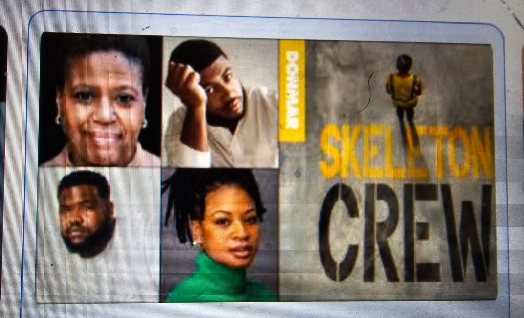 I love the Donmar Warehouse, a theatre in the Covent Garden neighborhood of London. The theatre is intimate, four rows of seating surround three sides of the stage, with a similar number and configuration of balcony seats. As a venue for new and often “edgy” productions, its staff tends to be young and filled with energy. The plays and actors are usually first rate. “Skeleton Crew” by Dominique Morisseau tells the story of four people working at an unnamed automotive factory at the turn of the second Millenium, a period when the implosion of that industry in and near the city of Detroit, Michigan, was taking place.