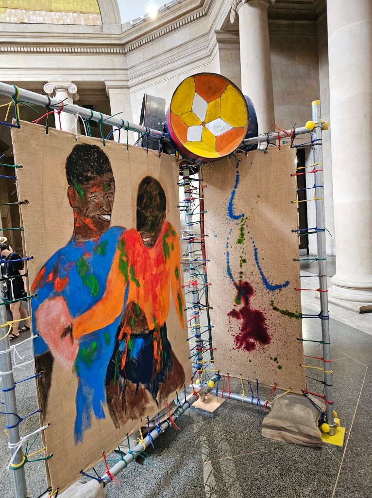 Alvaro Barrington had a colorful display that evoked both his Caribbean family connections and the spirit of Carnival (being celebrated with the Notting Hill Carnival in London).