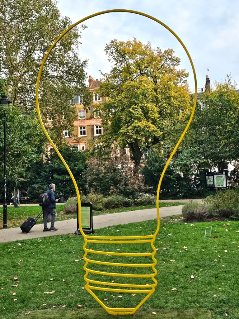 One of the great things about being in London in early October is the chance to celebrate the birthday of the older of two of my “nearly-grandnieces.” These are the granddaughters of my longest-standing English friends, Nigel and Gwynne and the daughters of their son and daughter-in-law, the amazing accomplished James and Katie. Below is a picture of the venue, a great community space, and a picture I took from my Uber along the way. The party was a wonderful chance to catch up with James and Katie’s extended families and to be reminded of how much noise a bunch of happy, healthy ten year olds can make.